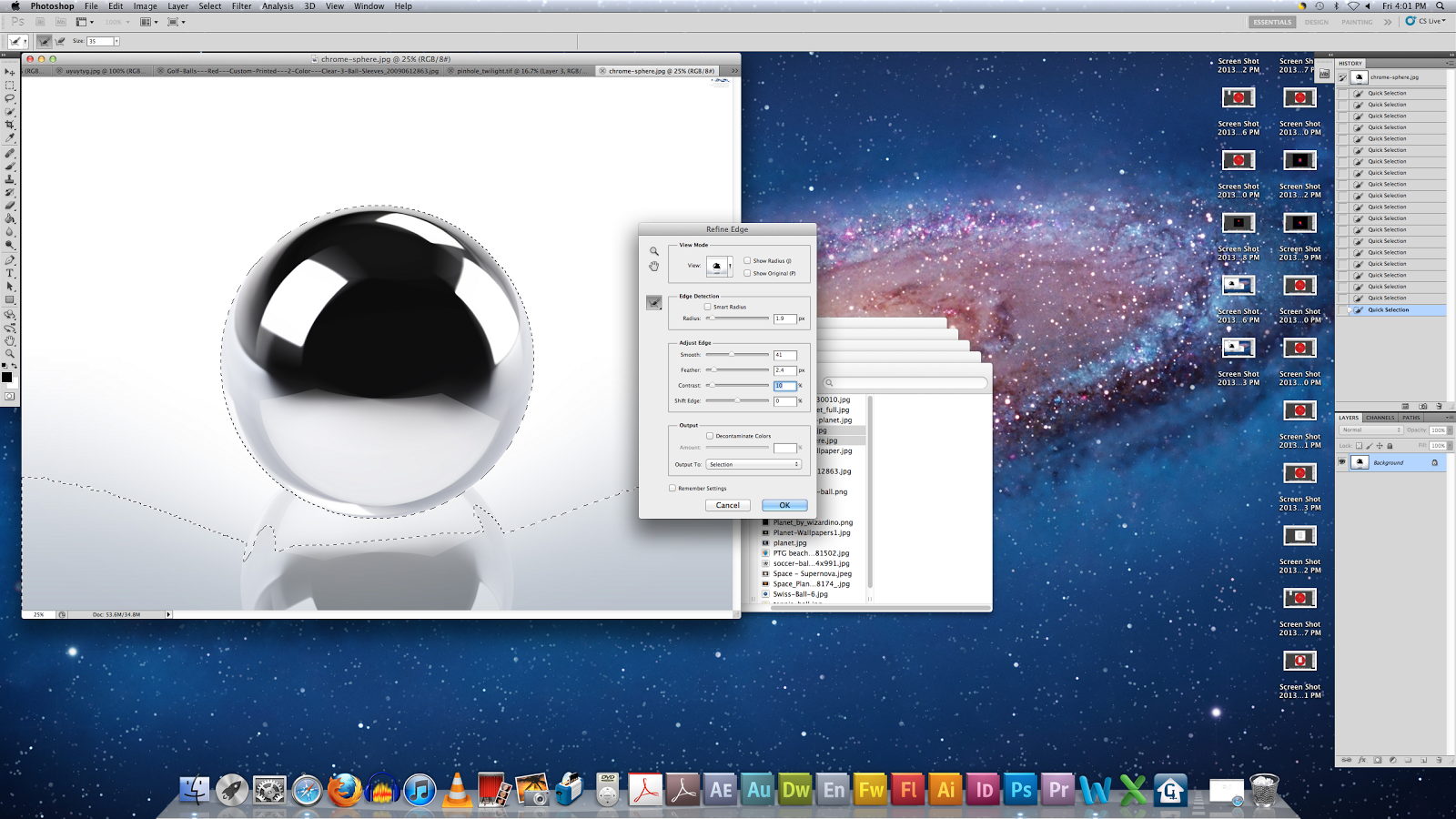 The Refine Edge tool is a really handy tool to know in Photoshop, especially for perfectionists like me who want to make sure the selection is perfect! The tool helps to make sure the edge is not a sharp edge but isn't completely blurred! And that the selection doesn't inlcude any unwanted material, ie. the white background.